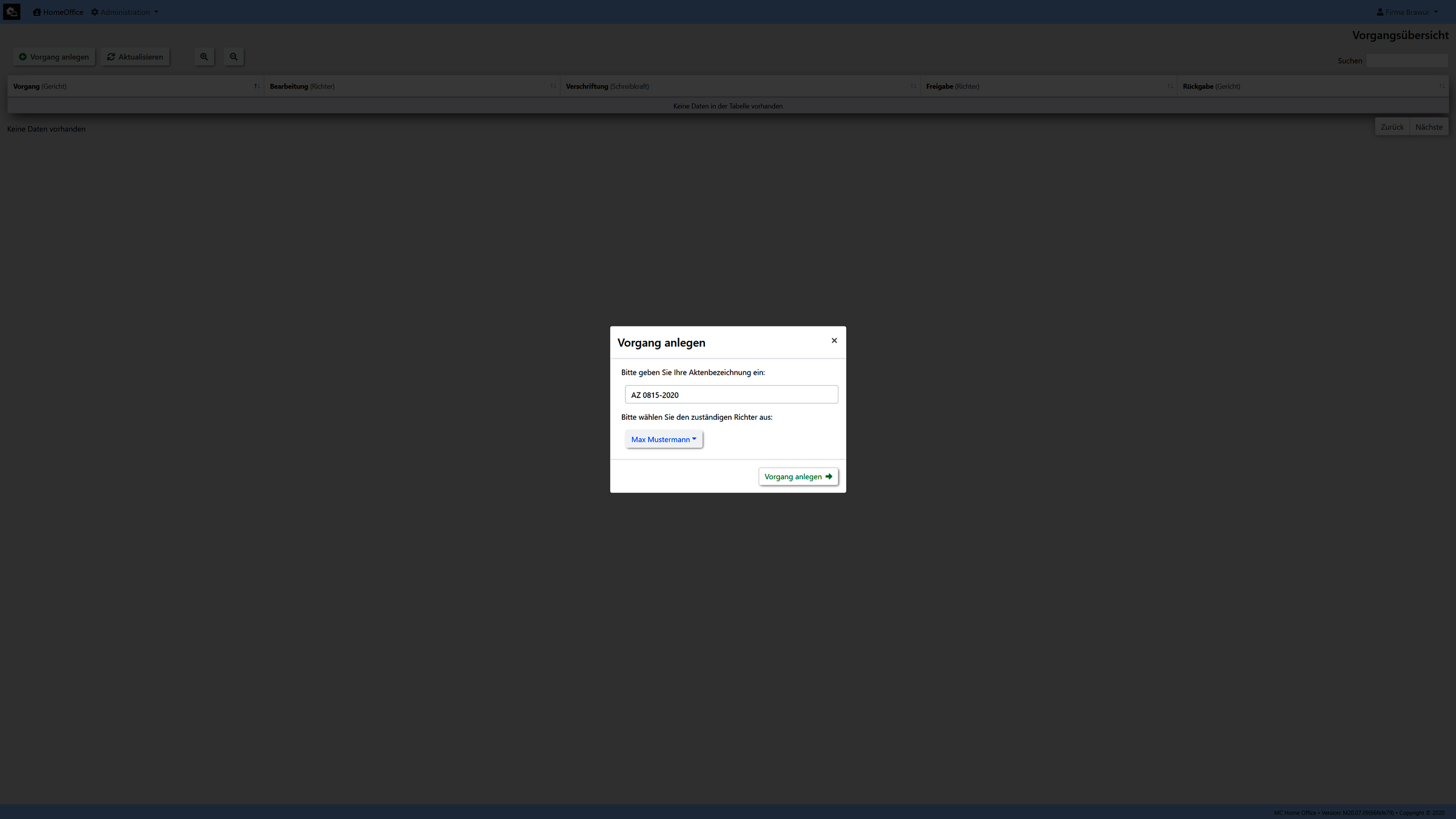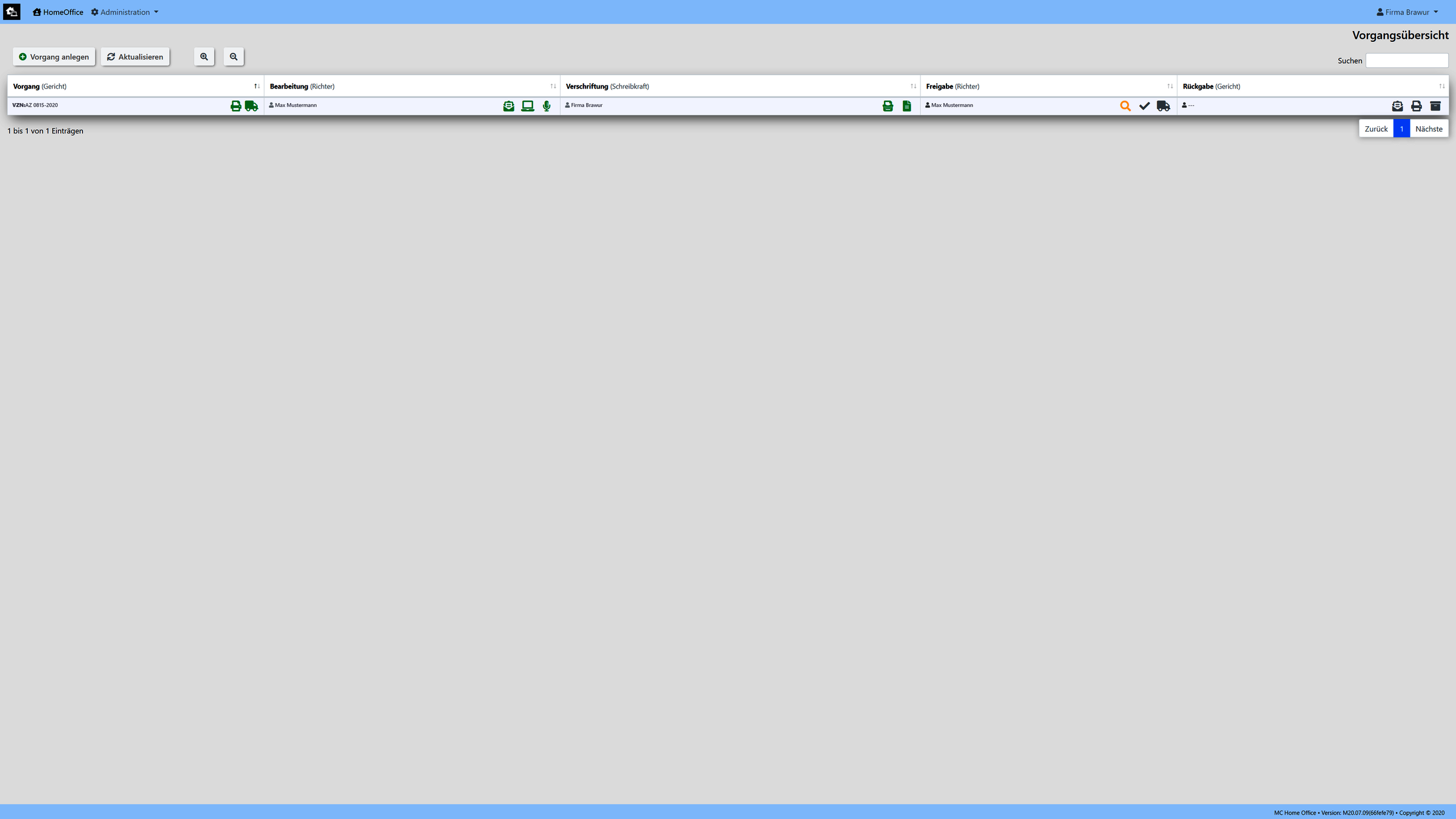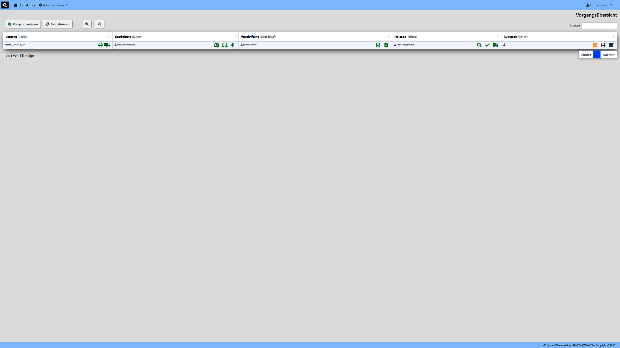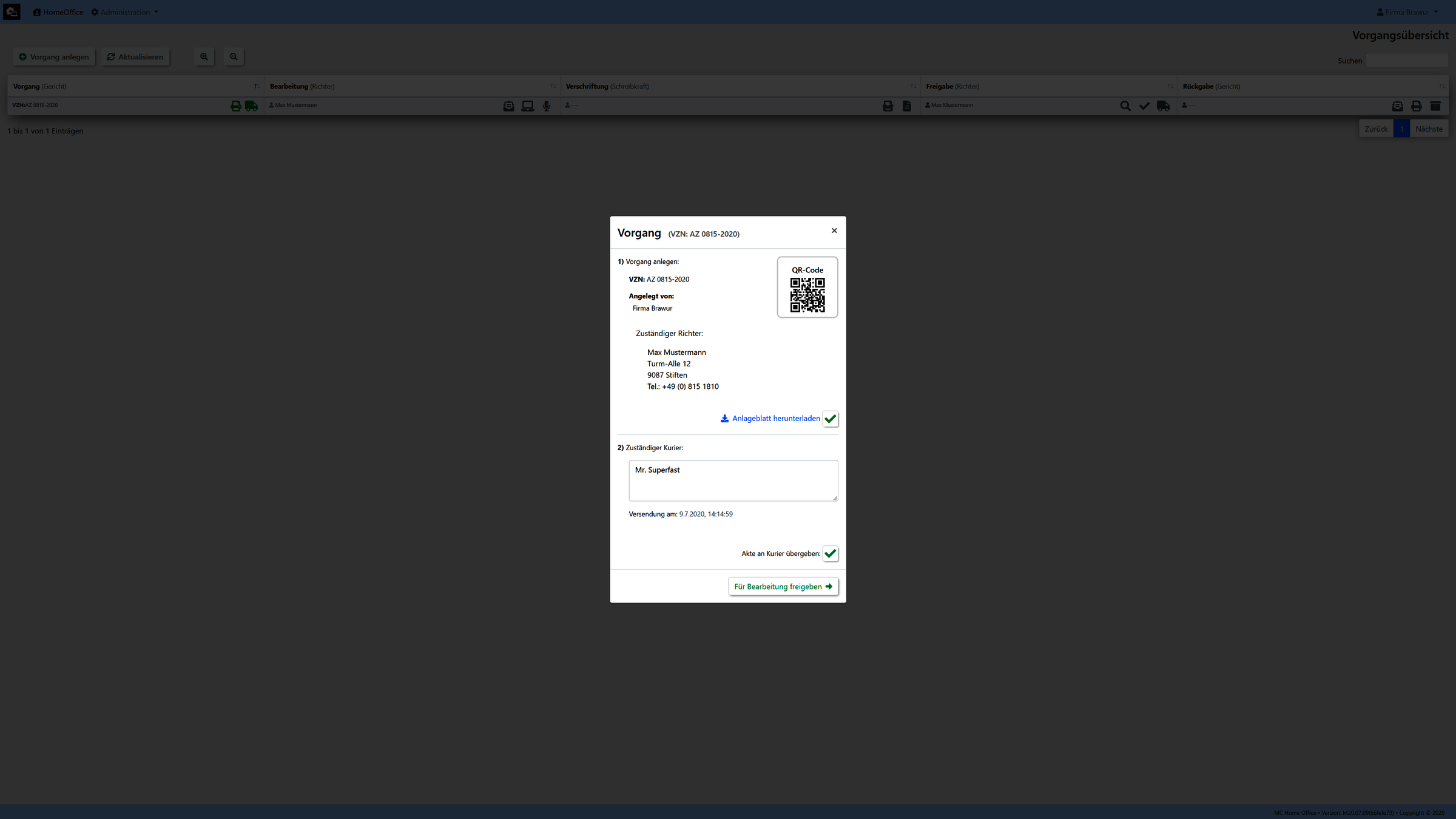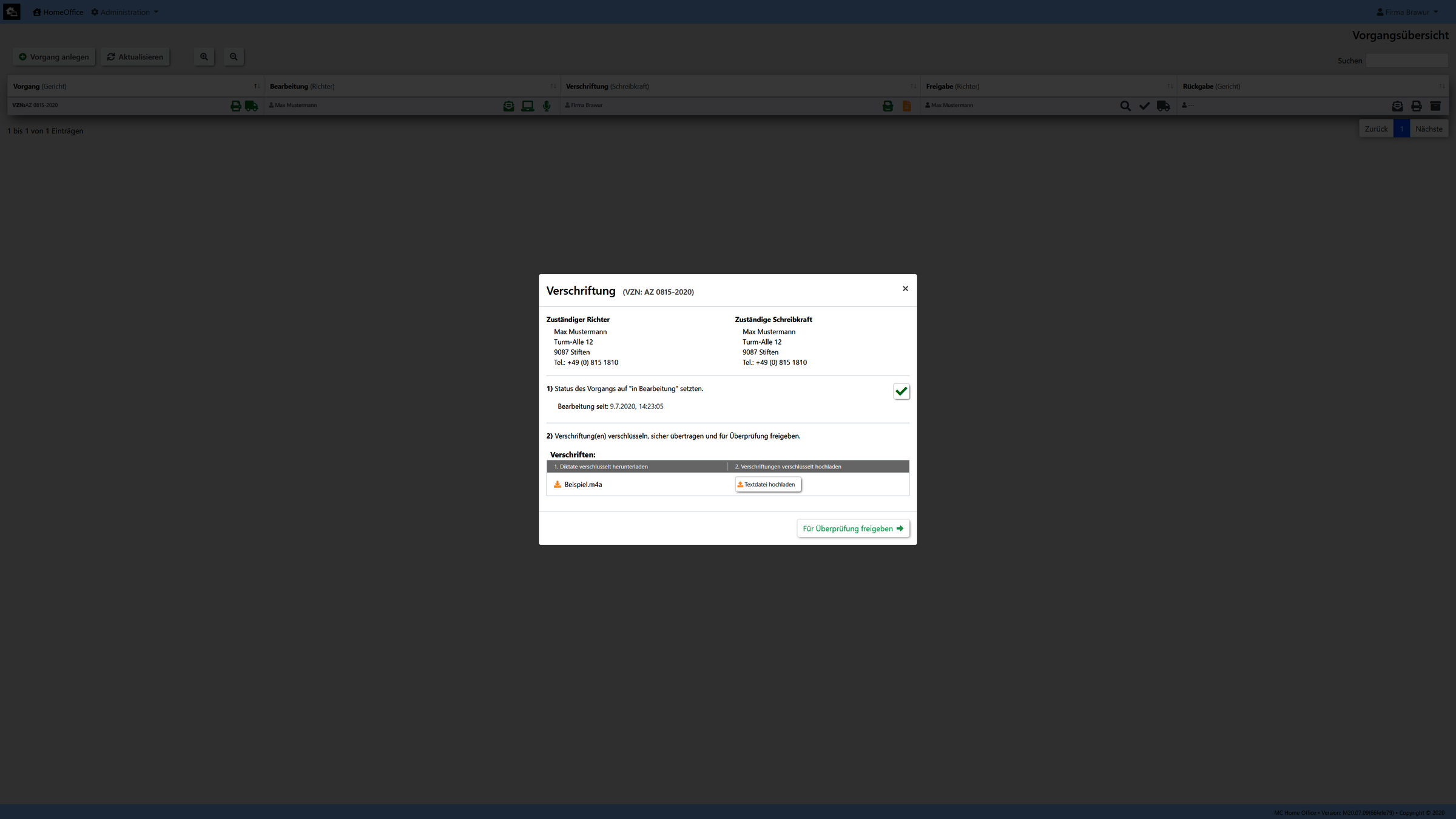 Unsere Umsetzung wurde exemplarisch für den Arbeitsablauf eines Gerichtes realisiert. (Kann aber auf kundenwunsch auch an jedes andere Szenario angepassen bzw. umgesetzt werden.)