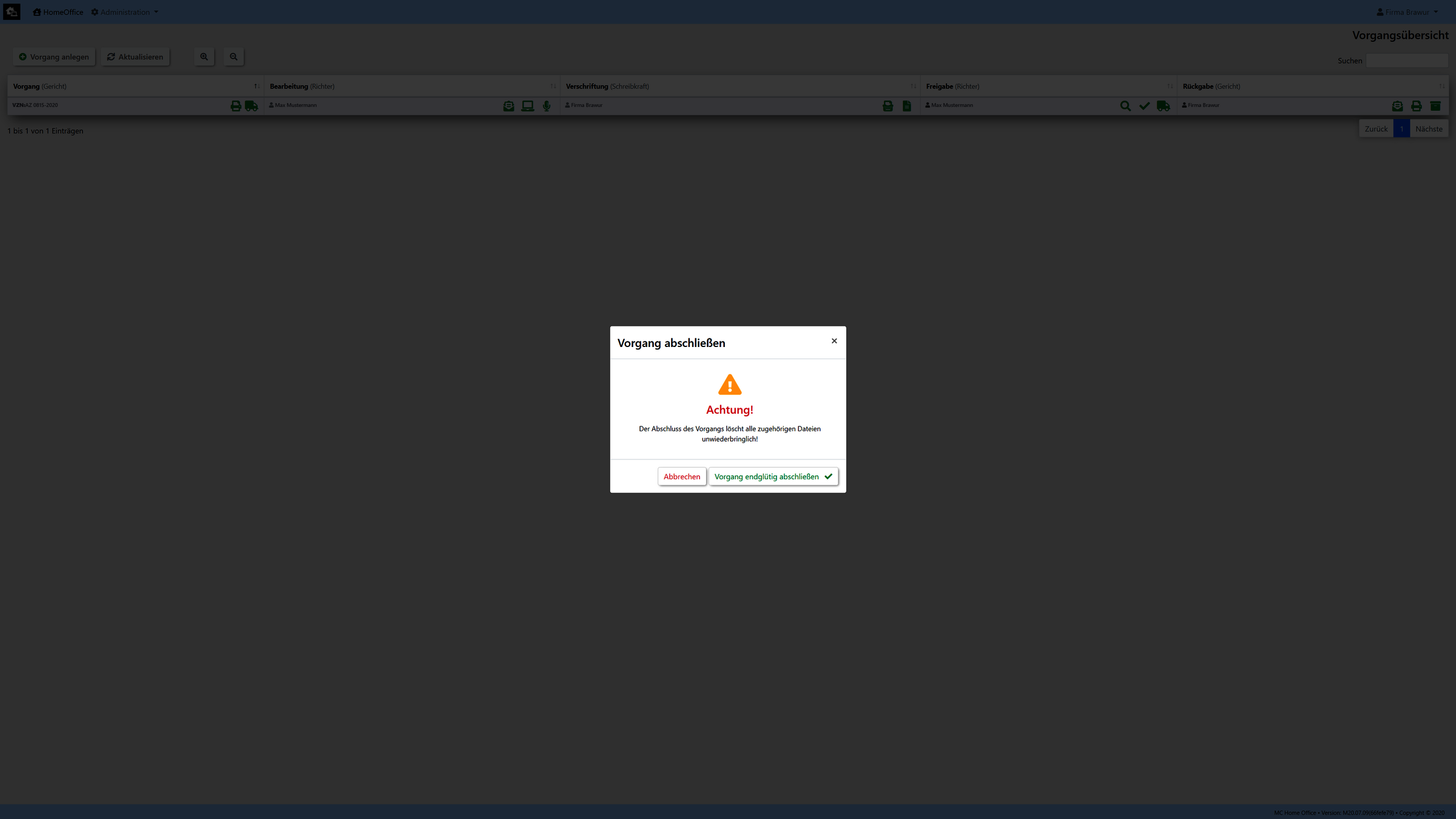 Nach dem Abschluss eines Aktenvorgangs wird dieser mit sämtlichen Dateien und Daten zum Download für die Archivierung angeboten und anschließend auf dem Server rückstandsfrei gelöscht.